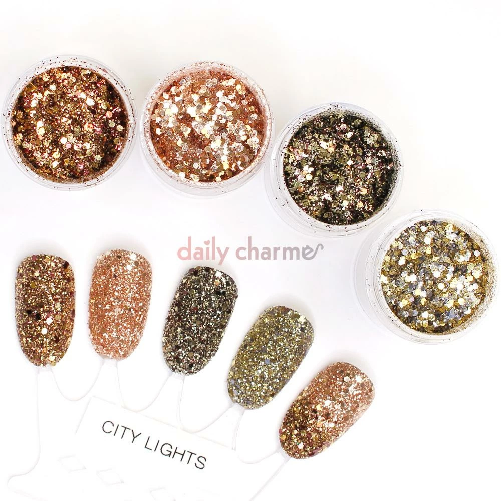 A set of metallic hex glitter mix in 4 gorgeous Fall/Winter colors – inspired by the city lights of New York broadway! Wear these sparkly glitters on your nails this holiday season.