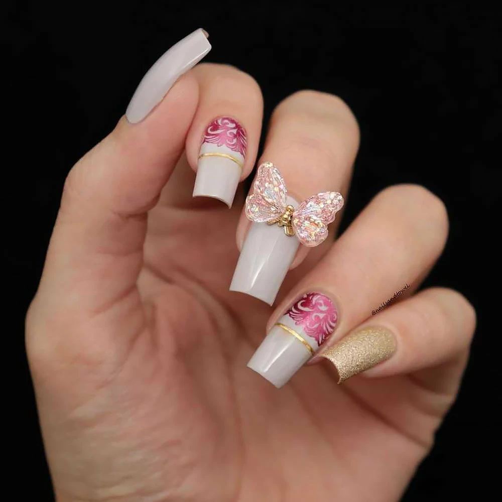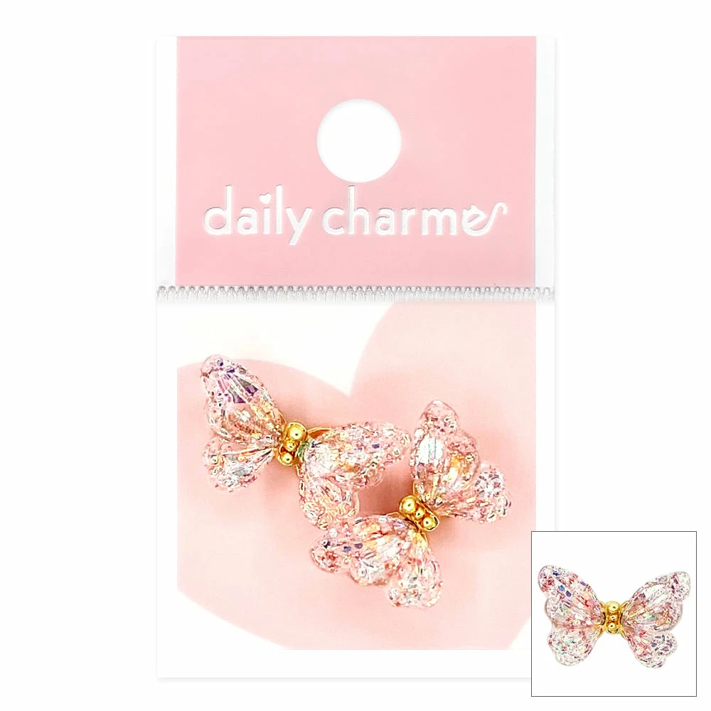 Decorate your nails with beautiful holographic glittery pink Fluttering Butterfly resin nail charms! These oversized butterflies has wings that are attached to flexible springs and appear to flutter when touched. They’re the perfect accessory to your floral nails and spring nail designs.