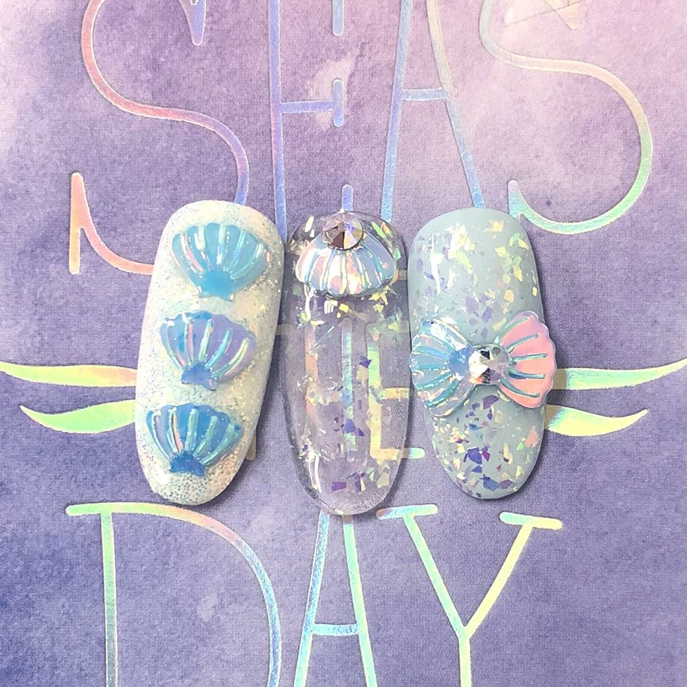 Gorgeous pastel rainbow iridescent seashell glitters! This mix includes 4 different colors: white, blue, pink and peach. Perfect as an accent for dreamy summer mermaid nails.