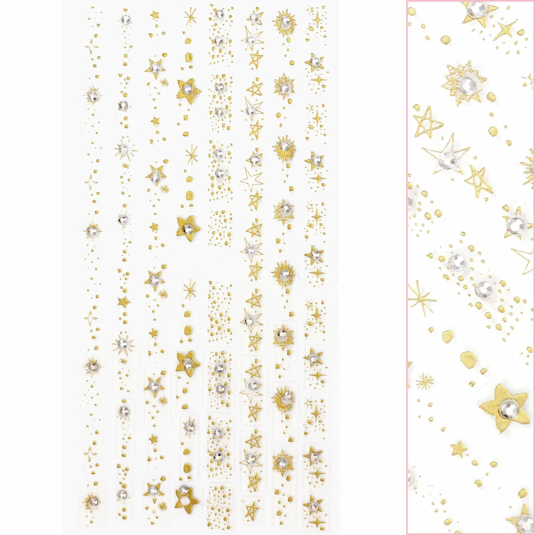Decorate your nails with dreamy golden starry prints that are bedazzled with crystals! This Celestial sticker includes delicate star and night sky patterns that are perfect for galaxy nails, star nails and any dreamy nail designs of your creation!