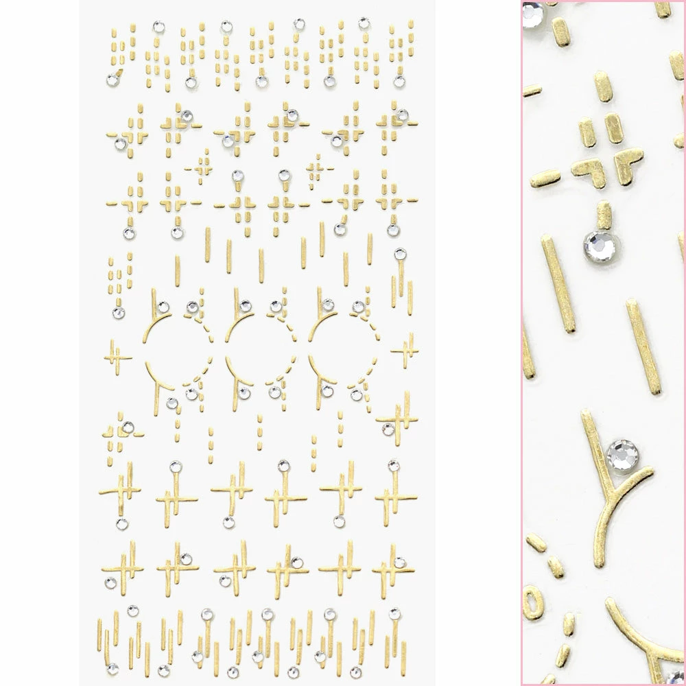 Decorate your nails with golden lines that are bedazzled with crystals! This Deco sticker includes a variety of line patterns including dotted lines, criss cross lines and straight lines, they are perfect for adding a little metallic sparkle to any manicure.