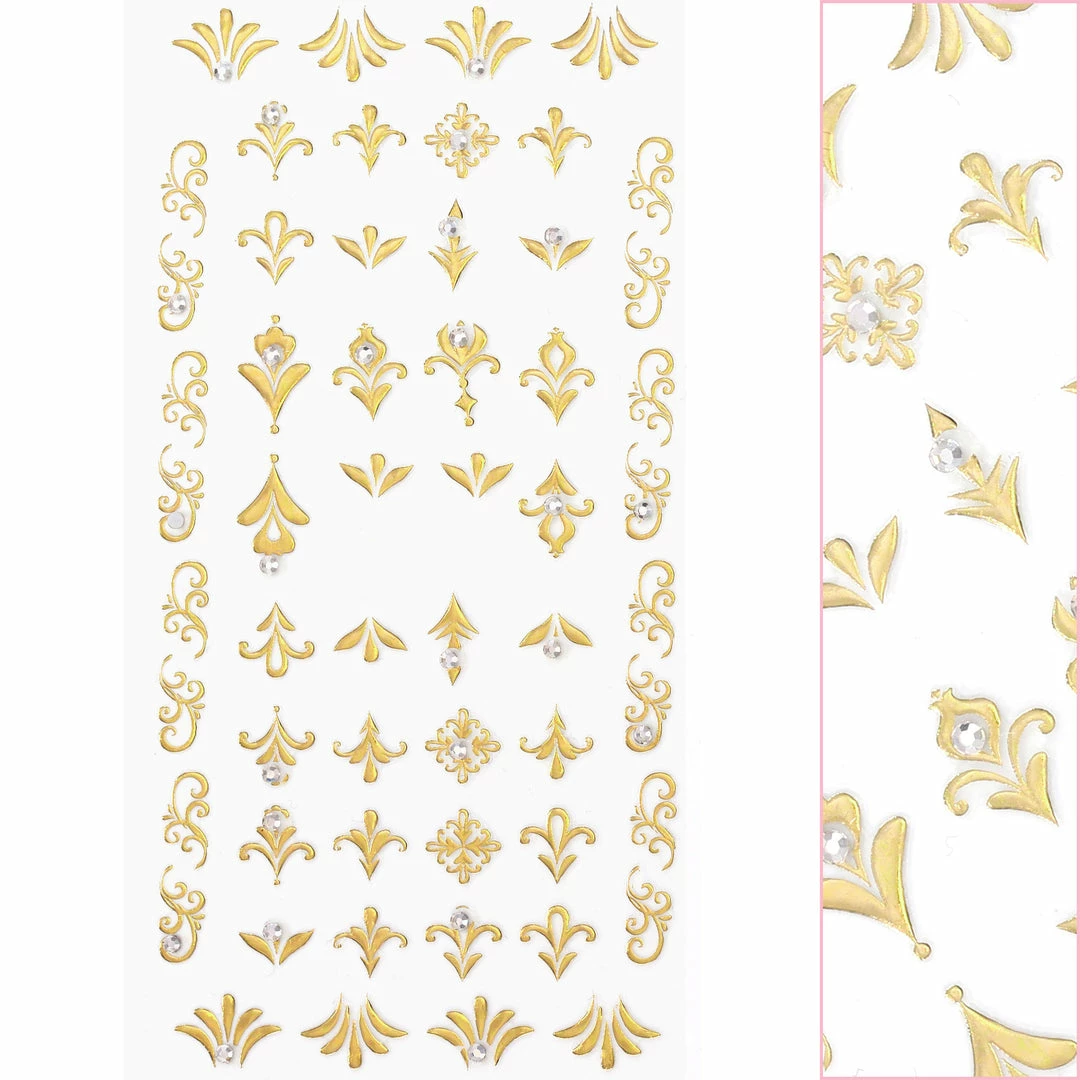 Decorate your nails with beautiful golden filigree patterns. These intricate gold patterns are versatile and easy to use, great for adding gold metallic accent and crystals to any nail design and are delicate enough for bridal wedding nails!