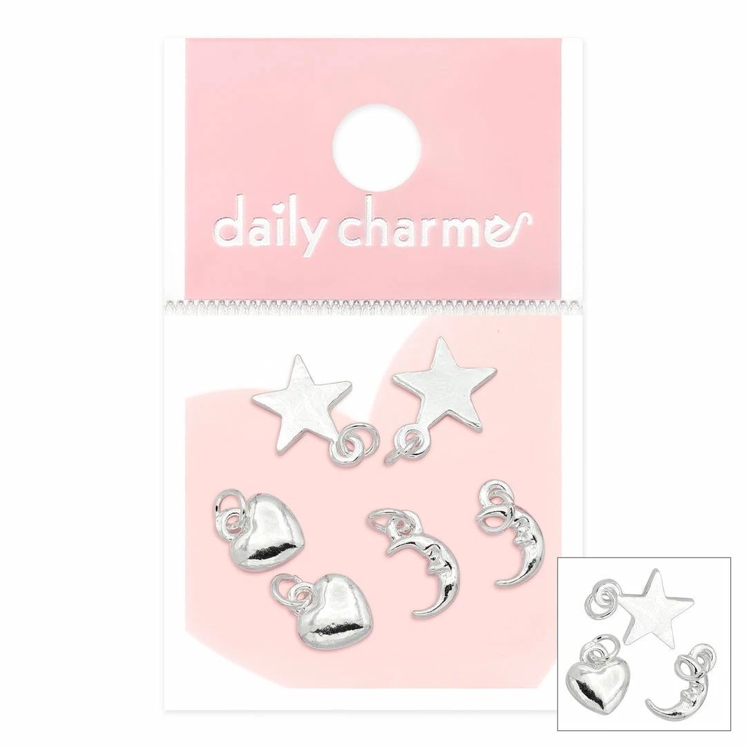 Decorate your nail piercings with these adorable silver moon, star and heart dangles! They’re a great way to add something eye-catching to your trendy nails.