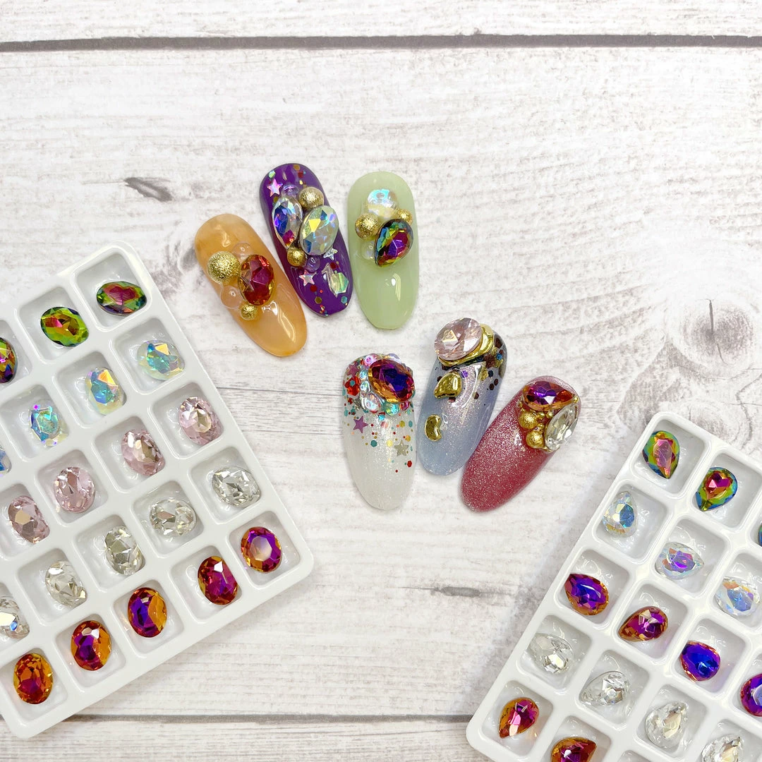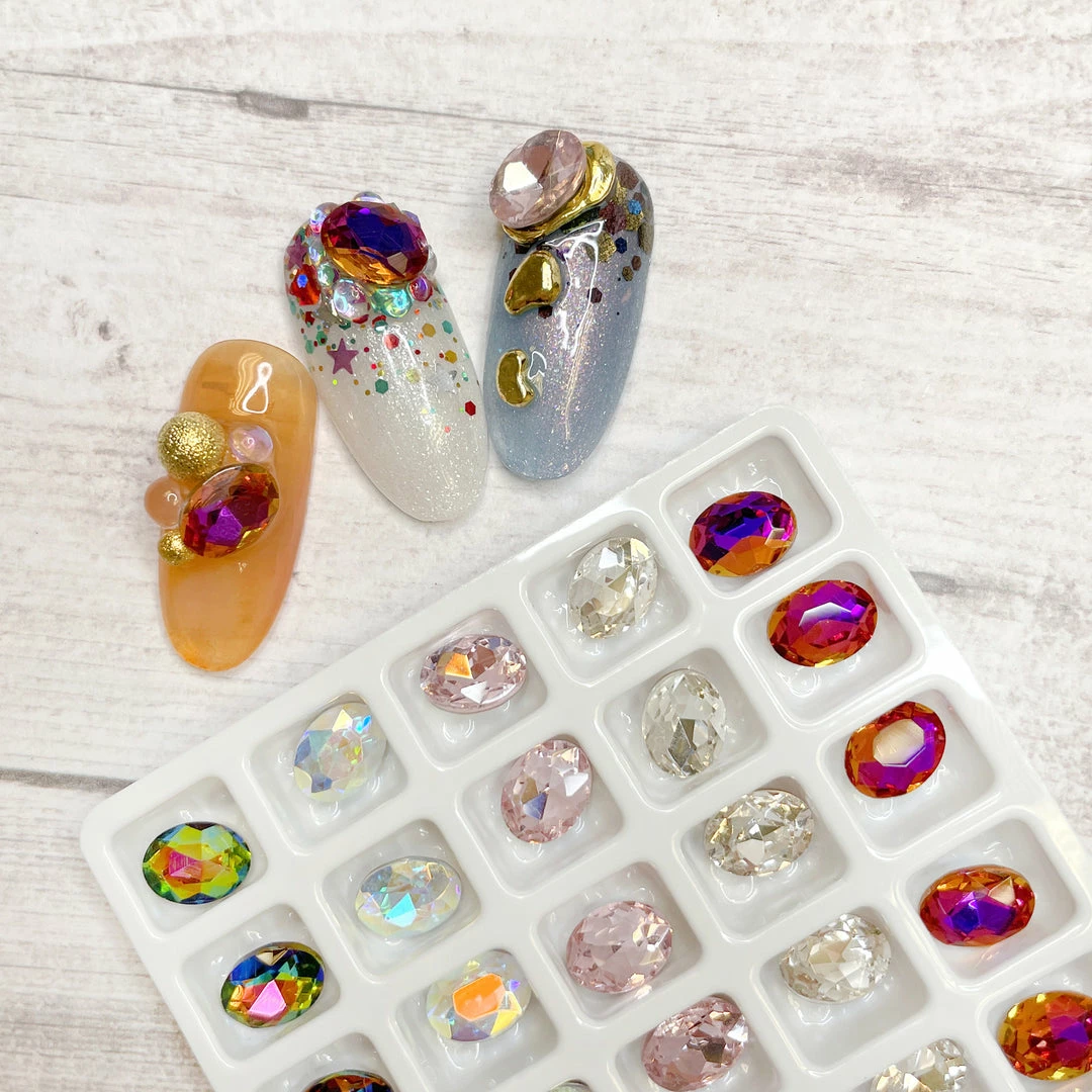 A beautiful mix of oval shaped pointed back chaton crystals that is perfect for creating a mesmerizing gem cluster or a custom charm on the nails!