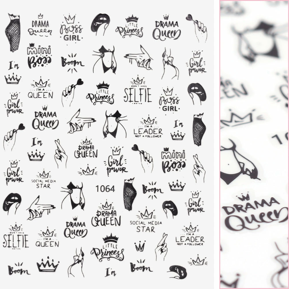 Decorate your nails with prints of hand poses, lips, selfies and phrases like boss girl, girl power and little princess.