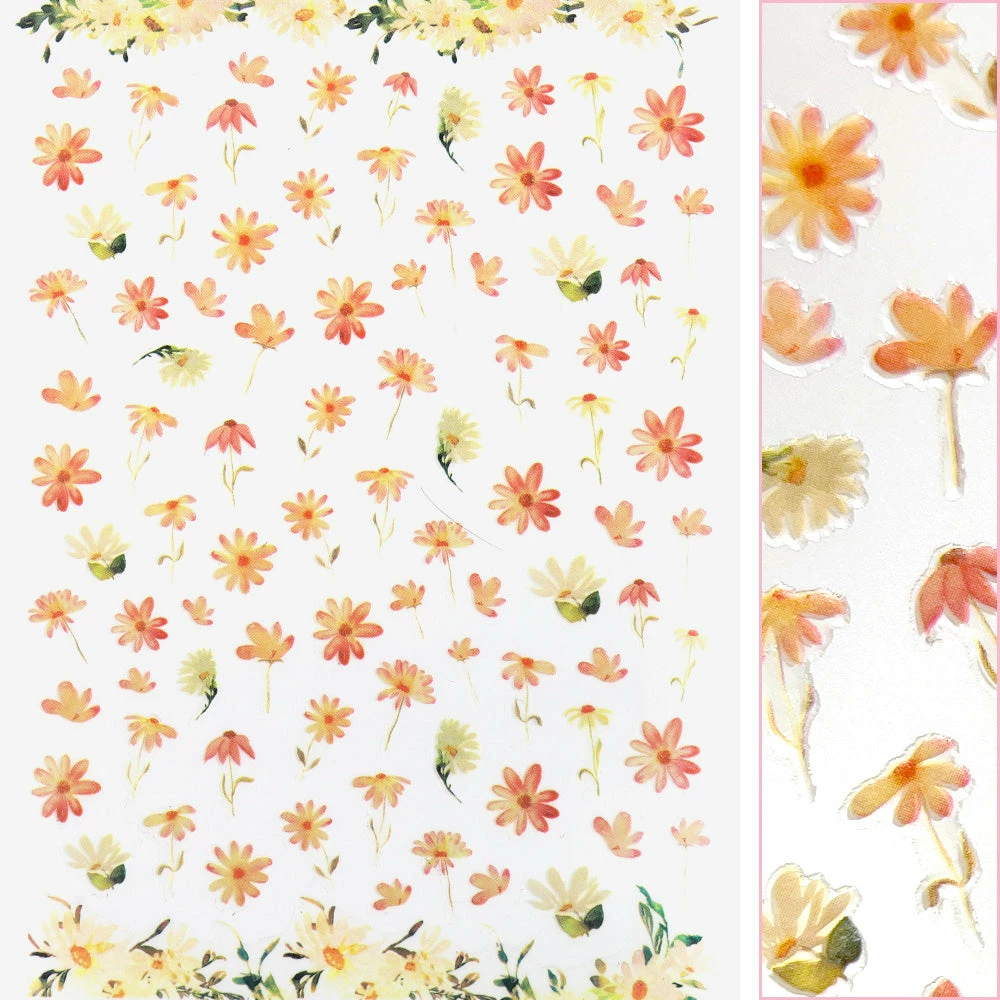 Happy orange yellow daisies in different shape and size to brighten up your Spring/Summer manicures! These are designed in the perfect size to fit on your nails.