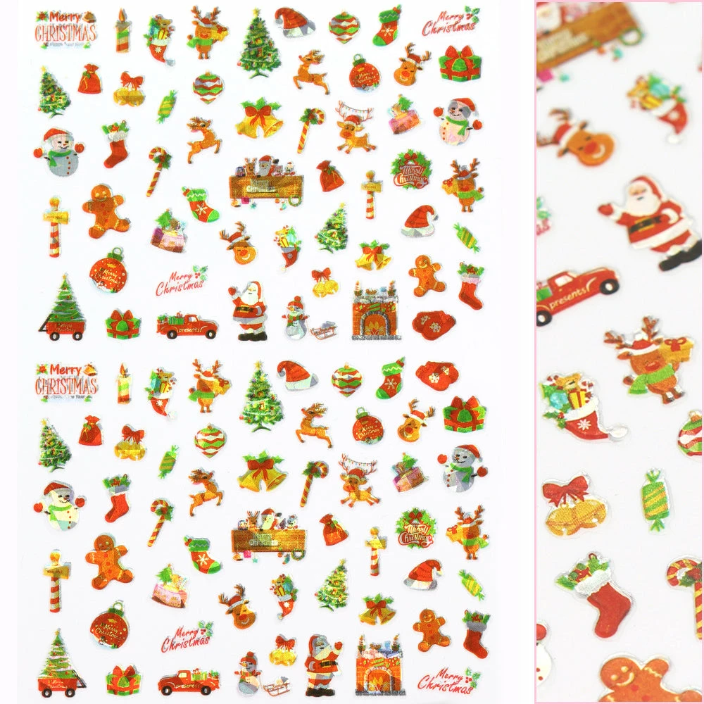Merry Christmas with this classic festive themed nail art sticker! Santa, reindeer, Christmas tree, gift boxes and much more with a little holographic sparkles.