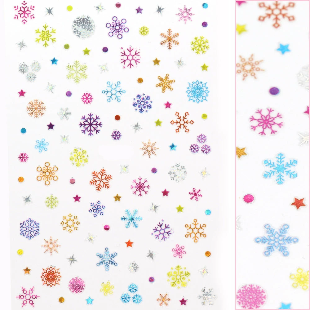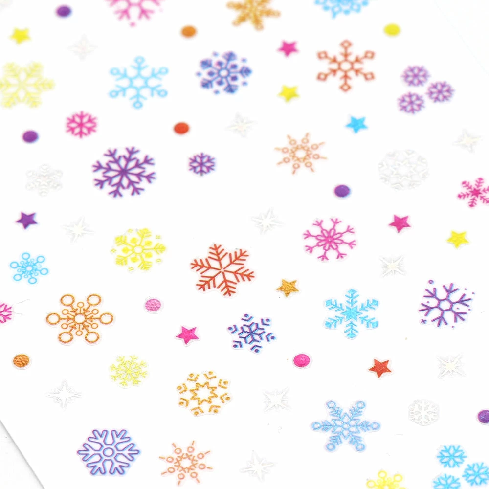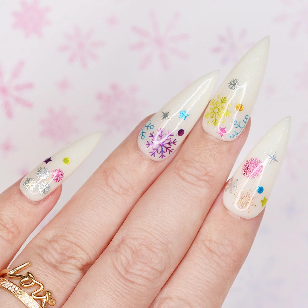 Decorate your nails this holiday season with these fun colorful rainbow snowflakes, dots and stars!