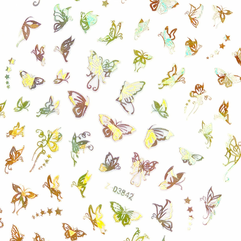 Add these fairy like golden holographic butterflies and tiny stars to your next magical manicure!