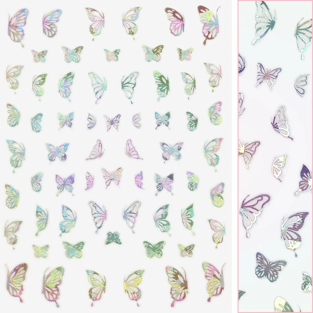 Mesmerizing silver holo butterflies in various sizes and design. The half wing butterfly looks really cute when you put each side on two nails next to each other!