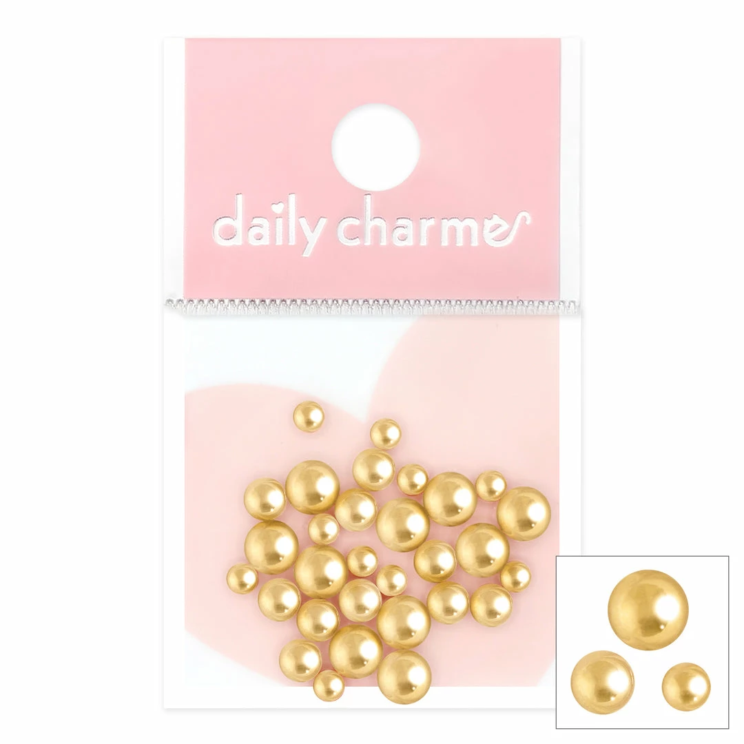 High quality plated shiny metallic beads with no holes in gold color. Use these beads to create unique nail charm clusters. These gold plated beads have more weight and are more scratch resistant than normal plastic beads.