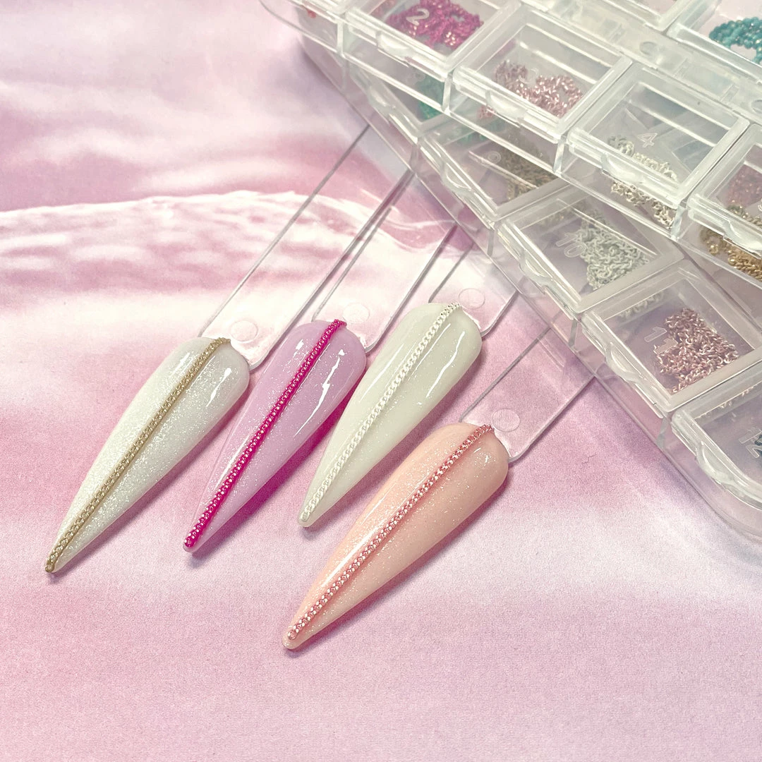 Set of bright matte gold delicate chains in 12 different colors. Specially picked to be used as nail art decorations and fit on your nails!