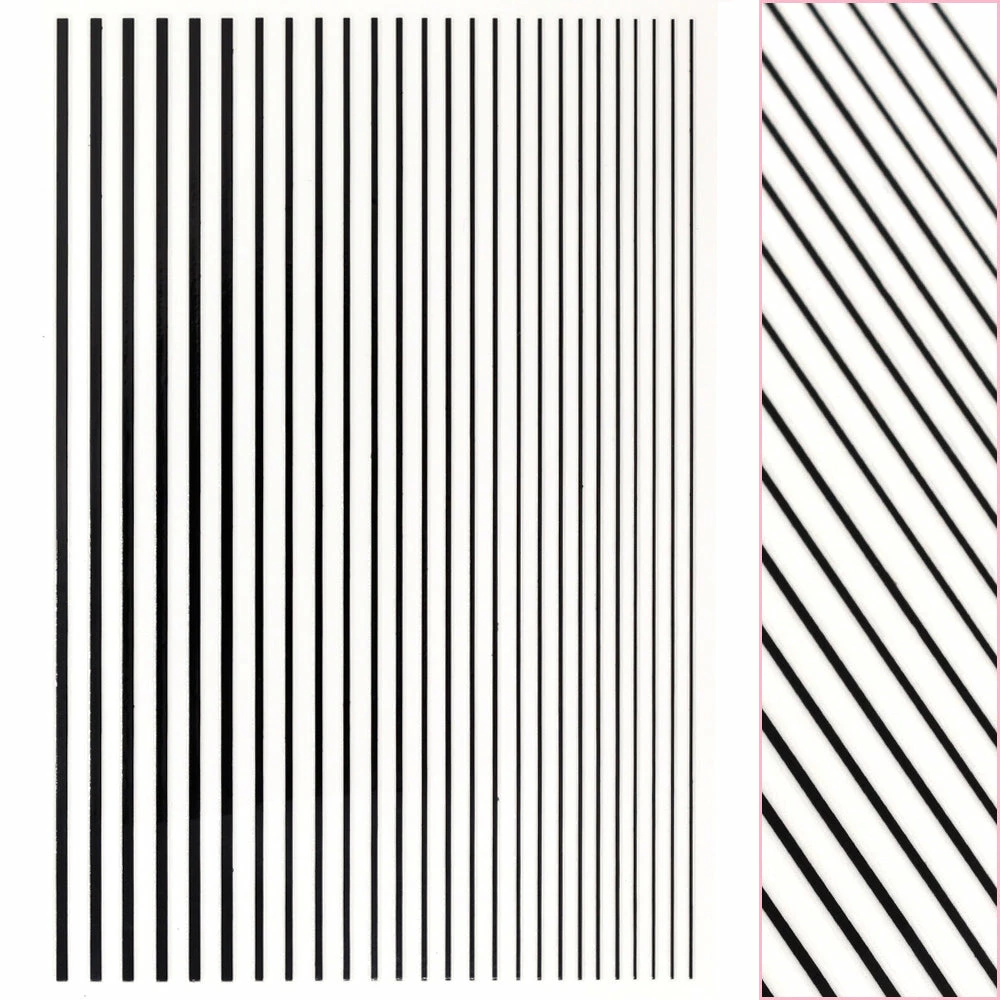 Beautiful Thin Line nail art stickers in opaque black. This versatile sticker is a great way to add classy geometric accent to any manicure. Each sheet comes with different sized fine stripes ranging from 0.5mm, 1mm, and 1.5mm in width. Decorate your nails with quality Daily Charme stickers.