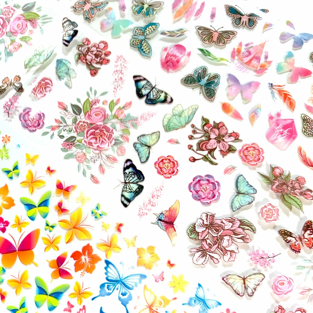 A box of 10 different floral butterfly print nail art foil papers. These colorful patterns are perfect for butterfly lovers! Cut and layer these foils with transparent background for a custom look! Easily apply foils with our bestselling Foil Transfer Gel!