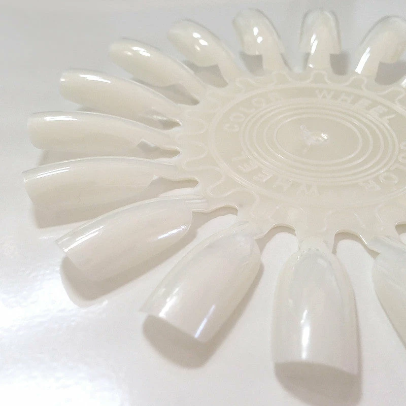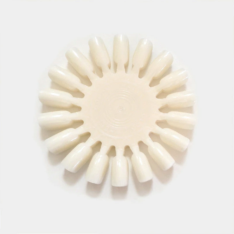 Set of 10 blank nail art display wheels with an natural white base color. These are perfect for swatching your polish or gel collections and displaying your nail designs.