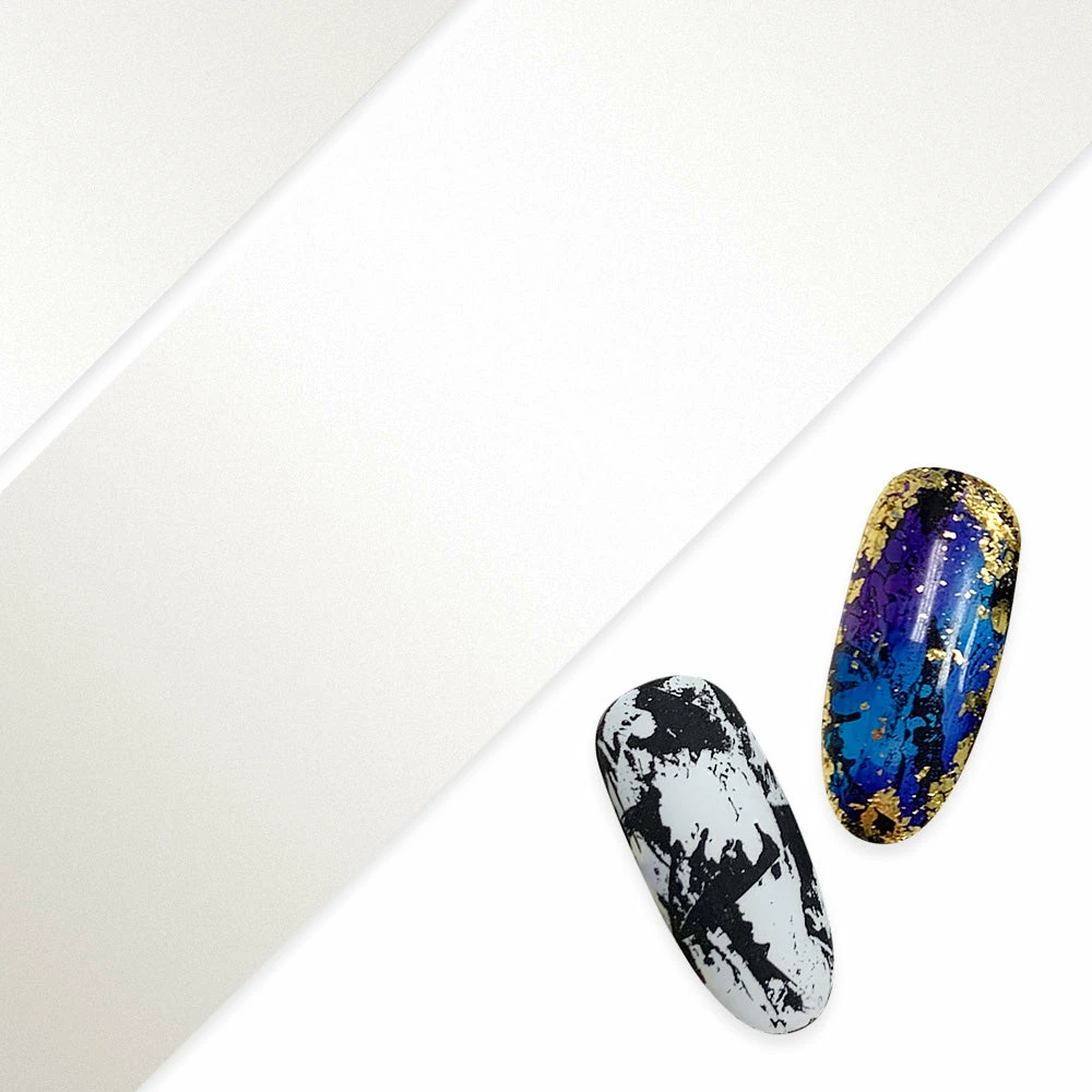 Add white foils to your nail art for unique texture and an abstract canvas! Create a Jackson Pollock or ink pen look with this white foil over black. Easily add colors with Charme Gel Tinted Glass Collection or nail art inks!