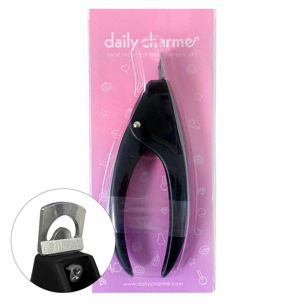 Professional nail extension tips clipper in black. An essential tool designed for nail technicians, effortlessly shorten the length of nail extensions with a single cut!