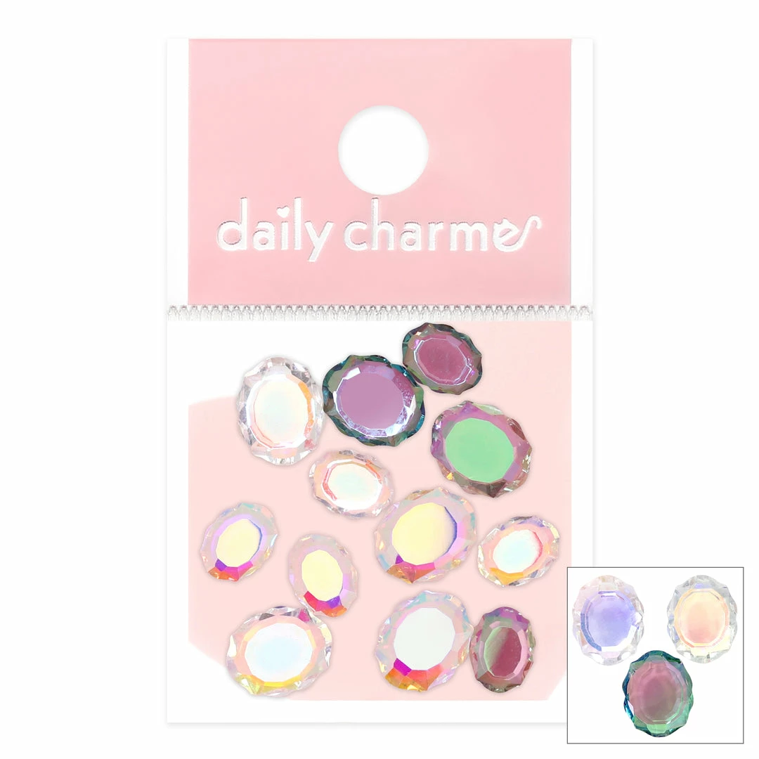 Beautiful baroque mirror shaped flat back crystals that are great for adding sparkles to your nails! These statement pieces have a transparent backing and will change color when applied over different base colors.