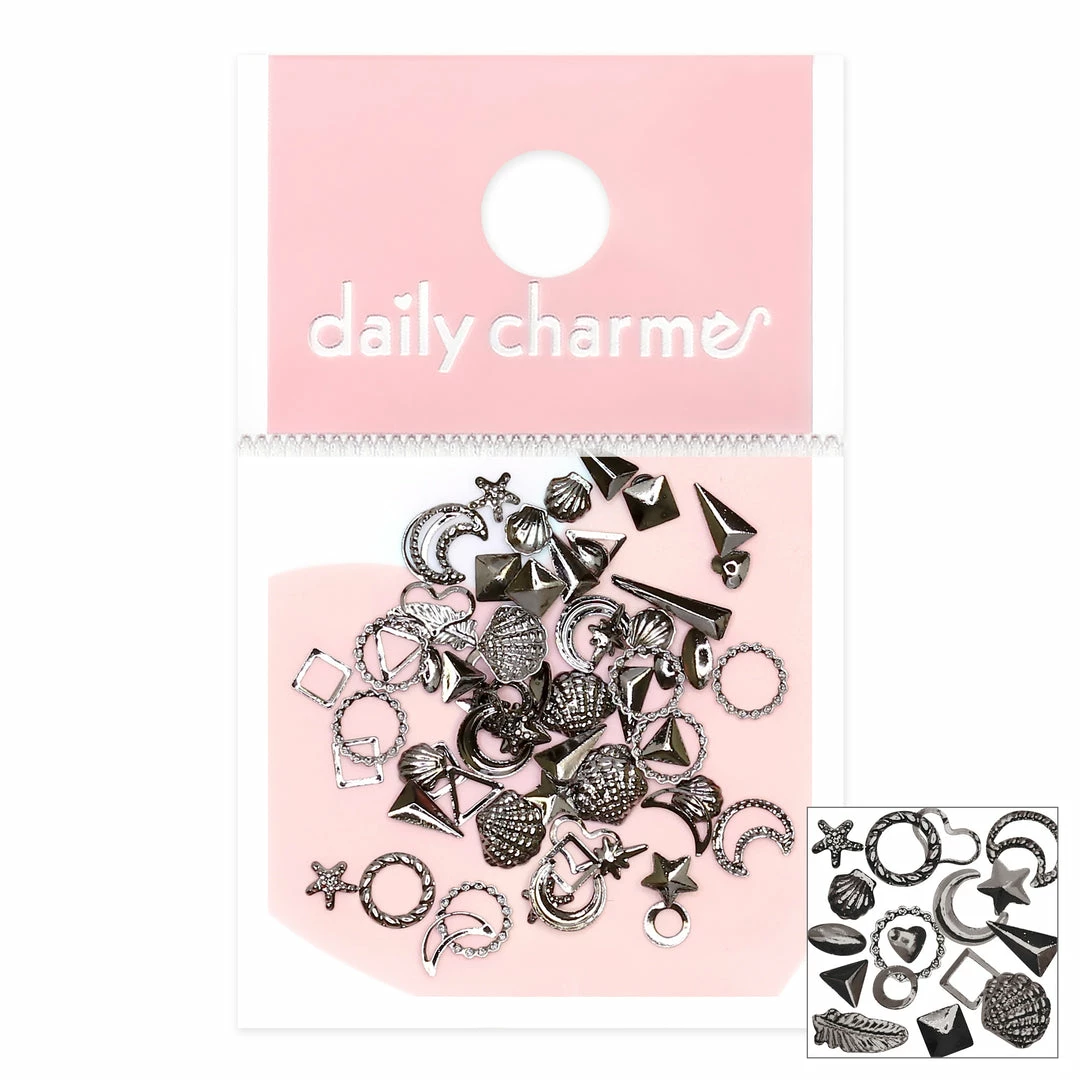 Our gunmetal Ultimate Metallic Studs Mix is a great way to try out a variety of different nail art studs. Each mix contains over 25 different shapes/sizes including star, triangle, marquise, feather, seashell, moon, heart, circles and more! Wear them alone for a little metallic accent or pair them with crystals for that extra sparkle.