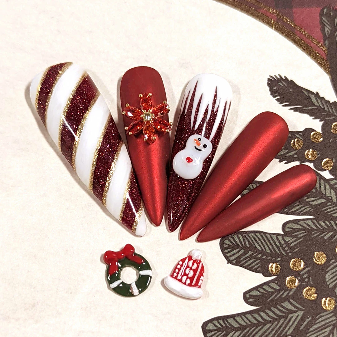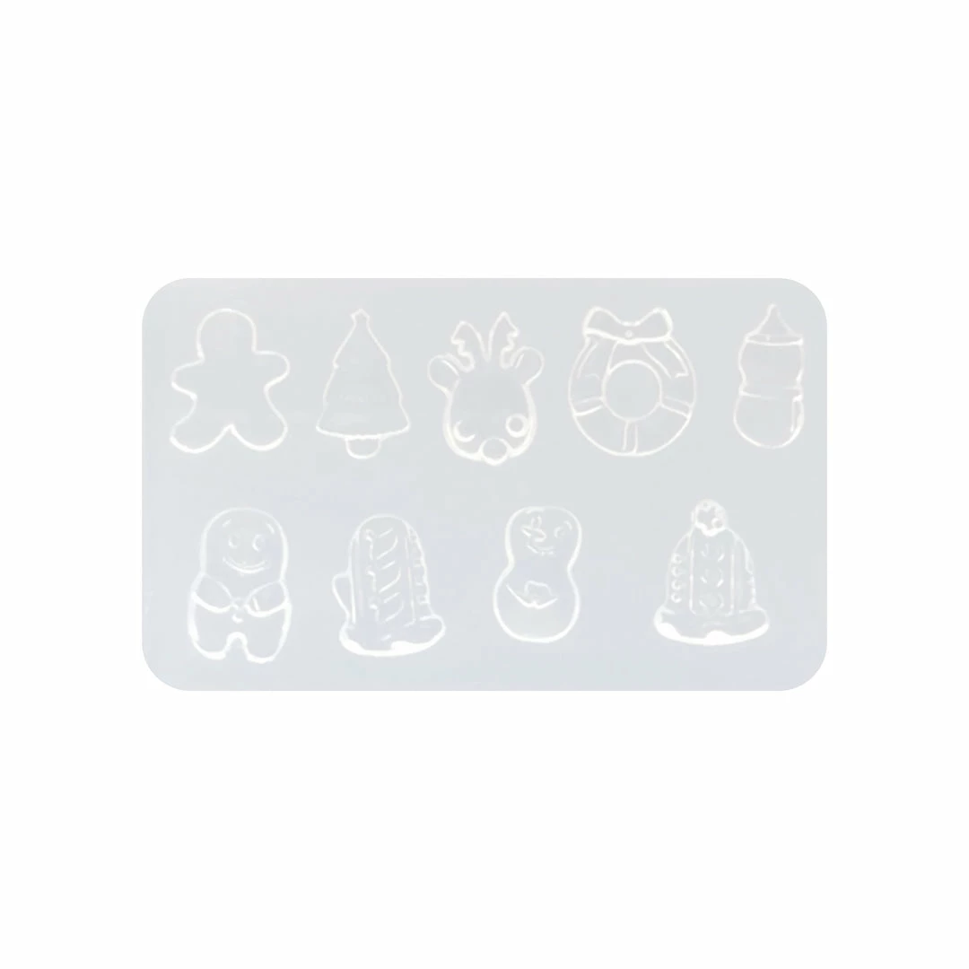 Mini silicone mold with festive holiday elements such as snowman, wreath, reindeer, Christmas tree, yarn hat and mitten. Create your own Christmas charms with gel or acrylic, this mold is perfect for the holidays!