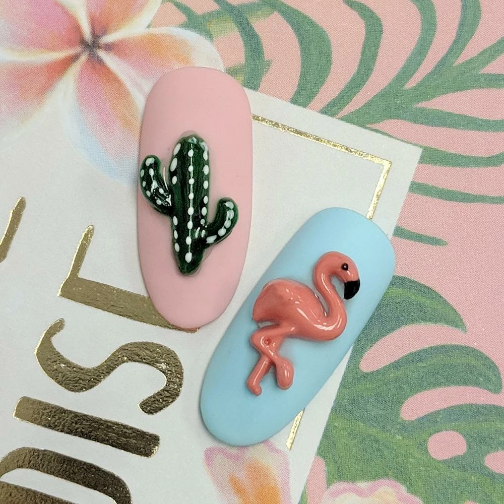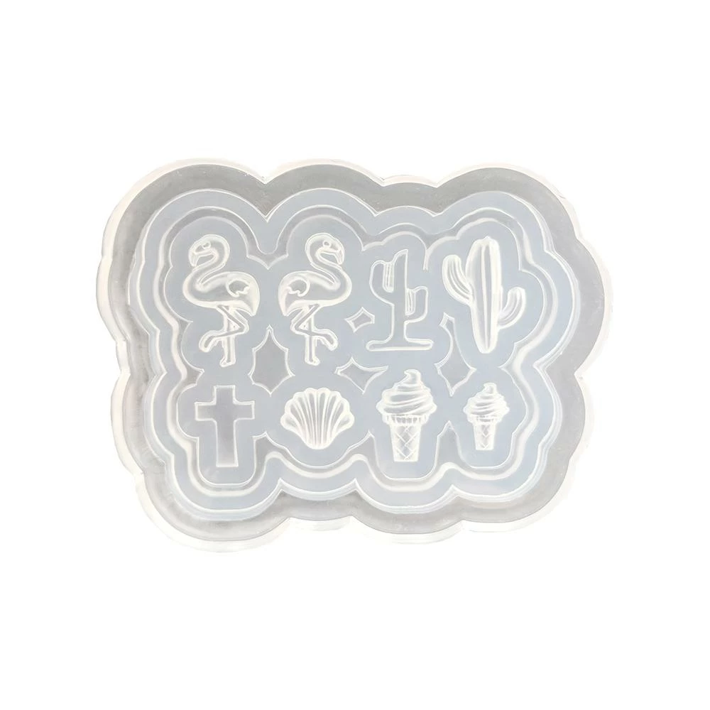 Mini silicone mold with cute designs of flamingo, cactus, ice cream and more! Make unique nail charms with this mold using acrylic mix or gels.