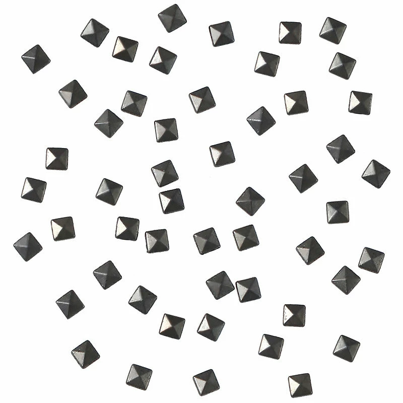 A pack of 100 square pyramid 3mm studs in gunmetal color.