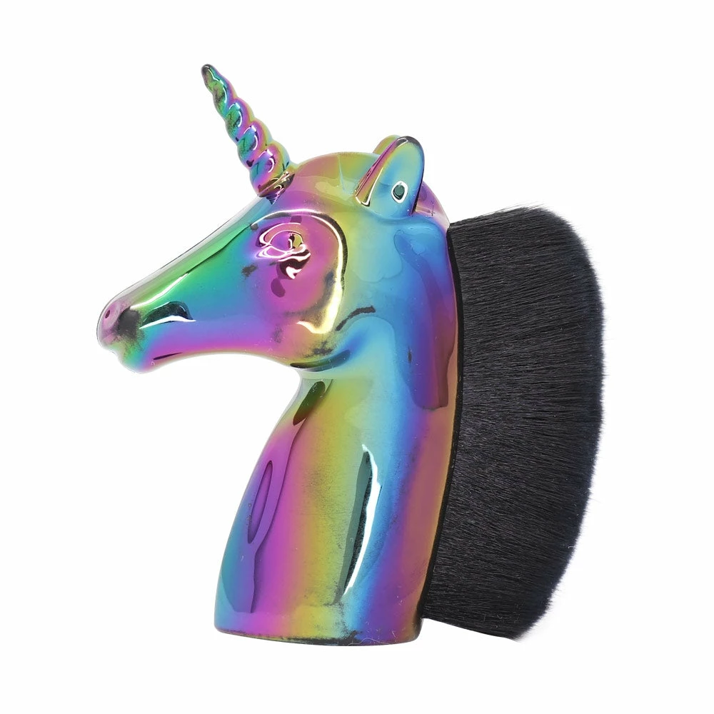 This magical Dark Rainbow Unicorn Head brush can be used for applying makeup, or as a dust brush for your nails. Nylon bristles are soft and easy to clean.