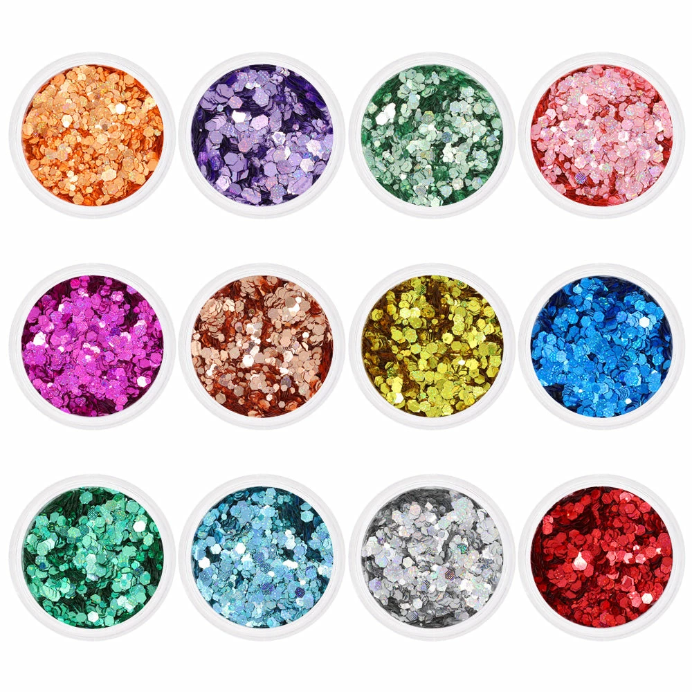 Each set comes with 12 different colors and are contained in 3-gram jars.