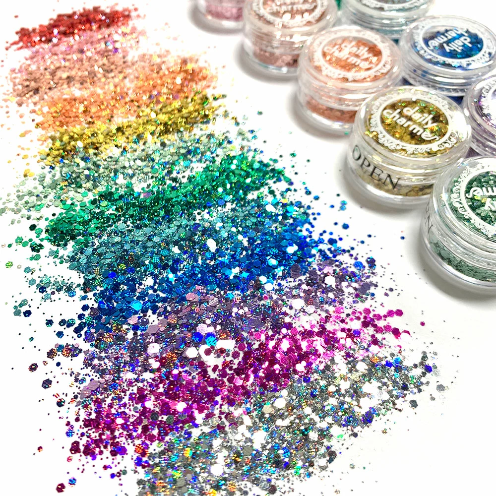 Use these fun holographic hex glitters to add colorful and bold sparkles to your nail art! These glitters have a pixel effect that makes it more holo and reflective!
