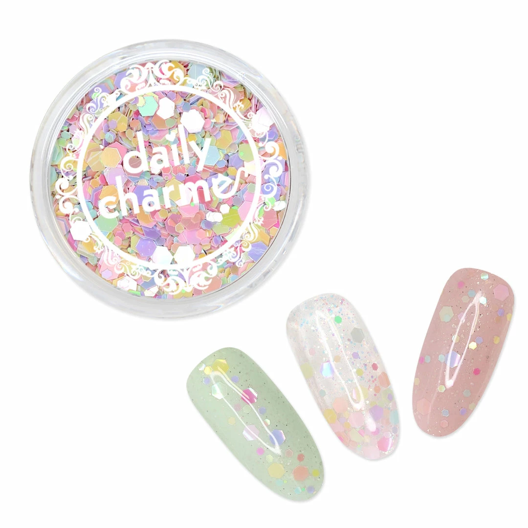Wear dreamy sparkles on your nails with this Iridescent Pastel Spring Confetti Glitter Mix! This cute mix is made with various sized hex shaped glitters in pastel rainbow colors, it’s perfect as an accent for magical spring nails and adorable Easter nails.