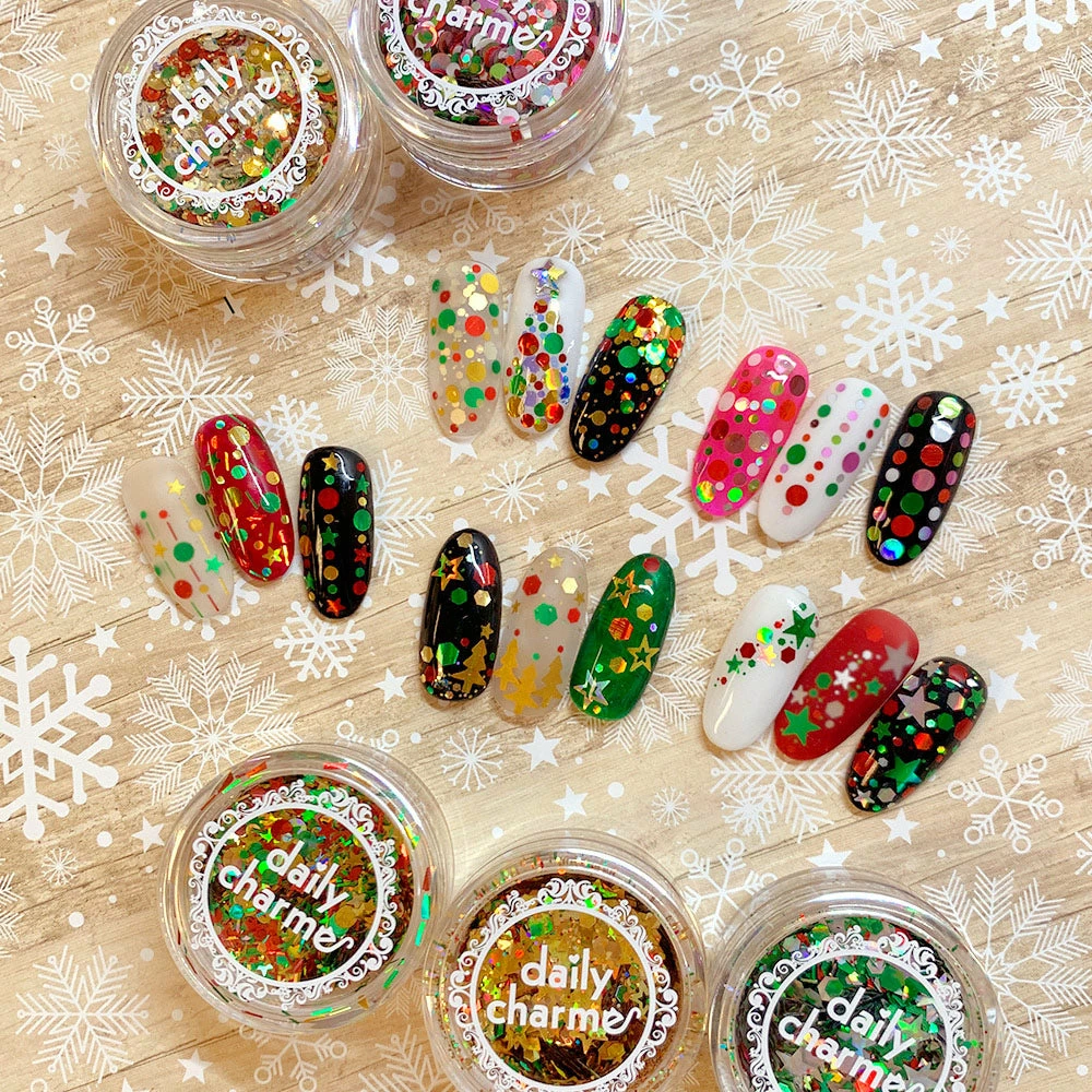 Festive Holiday Santa Baby is a mix of colorful red, pink, green, silver matte and holo dot glitters. Perfect for Christmas nail designs! Can be used with nail polish, gel or acrylic.