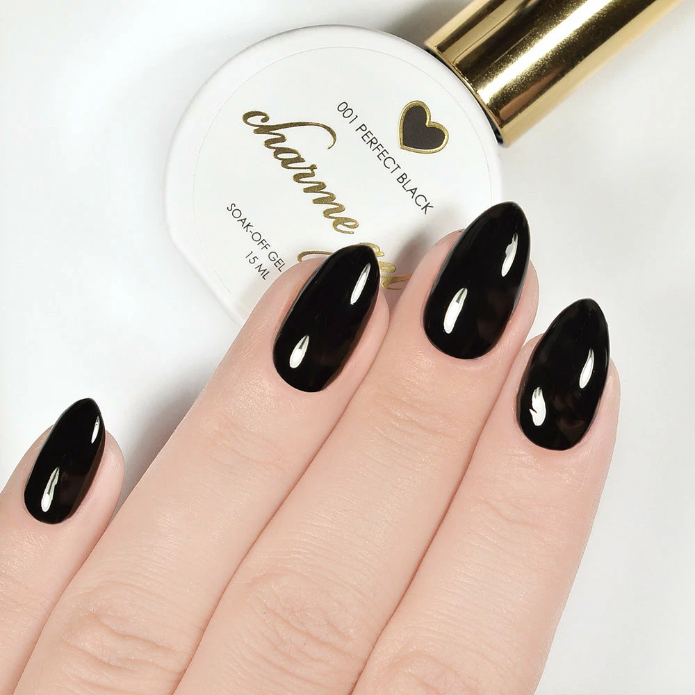 001 Perfect Black – THE black gel polish that you’ve been searching for, a true opaque black without green or blue hues!