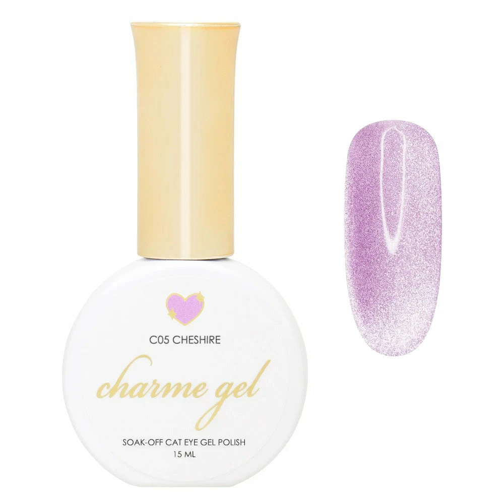 C05 Cheshire – This soft silky spring lilac can be both delightful or mysterious! Wear it by itself for a reflective glistering look or layer it over Charme Gel 905 Smokey Eyes for that Alice in Wonderland vibe.