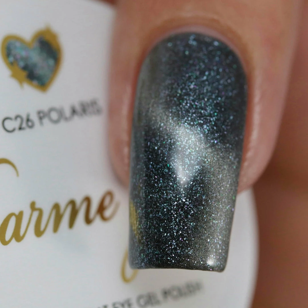 C26 Polaris – The North Star inspired this cool-tone gunmetal gray with green and purple iridescent shines as Polaris is known for providing guidance with stability and radiance.