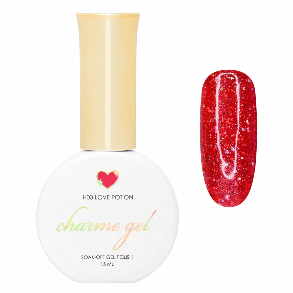 H03 Love Potion – Who needs to drink love potion when you can just wear it on your nails? To find true love, you need to first believe in love and the power of HOLO! Apply 1 coat for glittery effect or 2-3 coats for a more full-coverage effect.