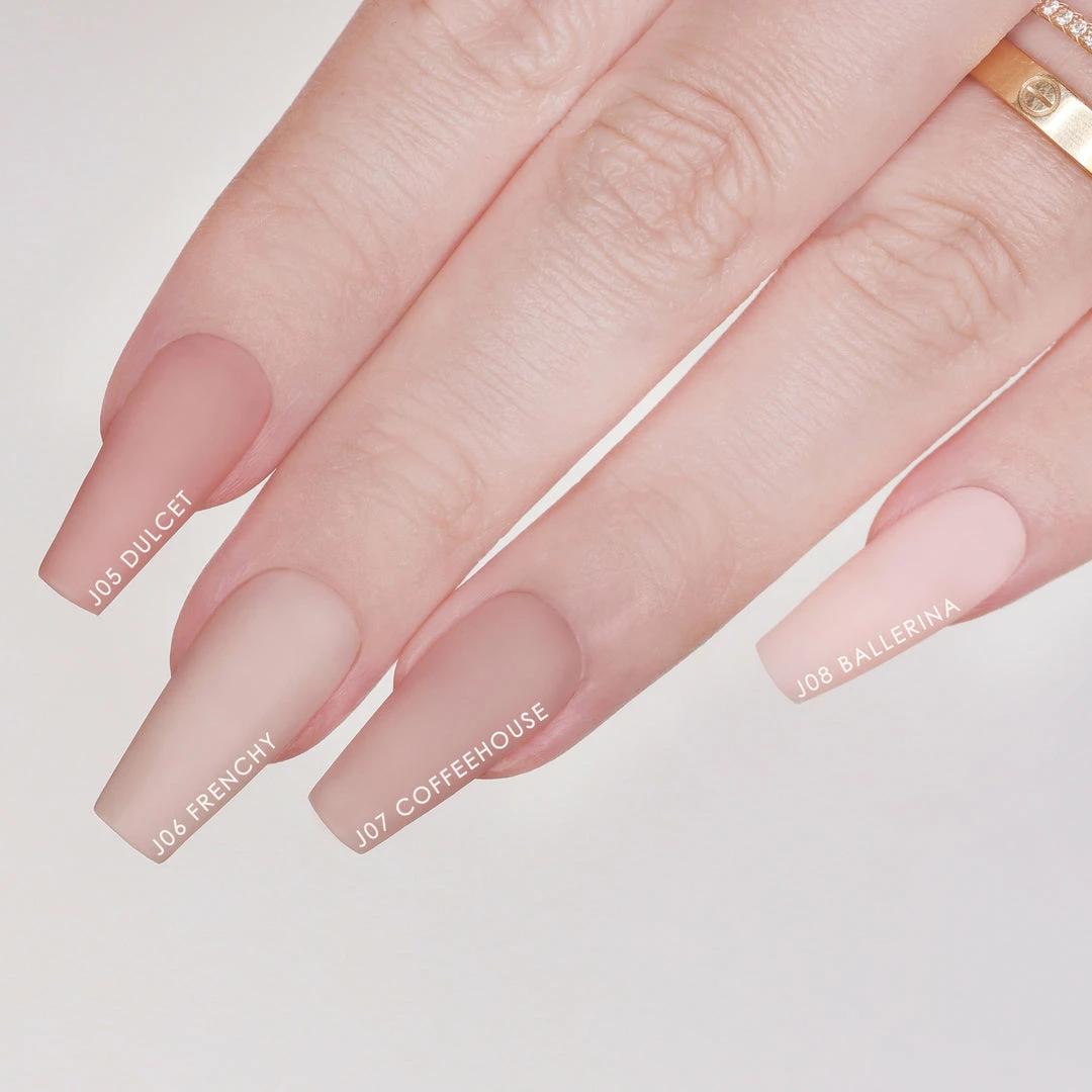 J05 Dulcet – A pleasant warm beige jelly just like the soothing soft jazz at a French coffeeshop. Classy enough for everyday wear but still fun with a hint of pink!