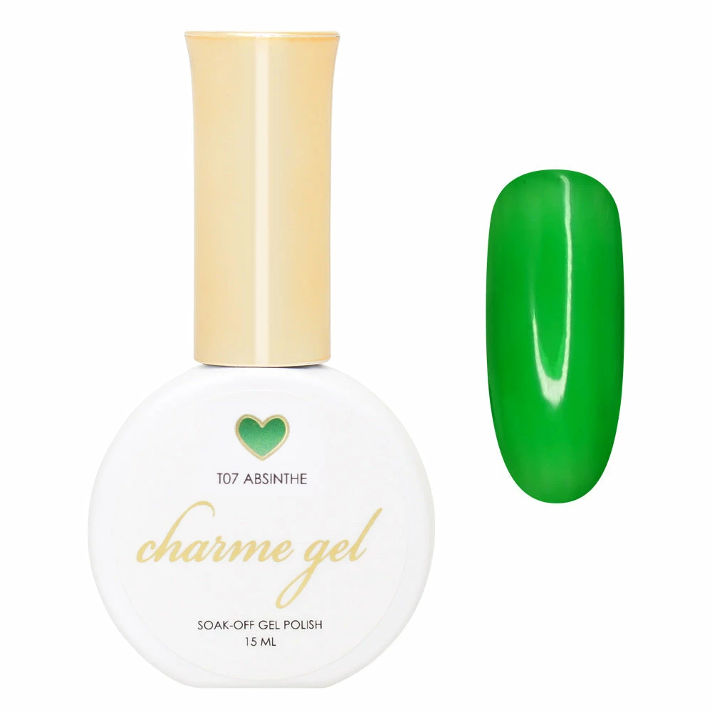 T07 Absinthe – From our Tinted Glass Gel collection, this transparent apple green will add a pop of color to your nails!