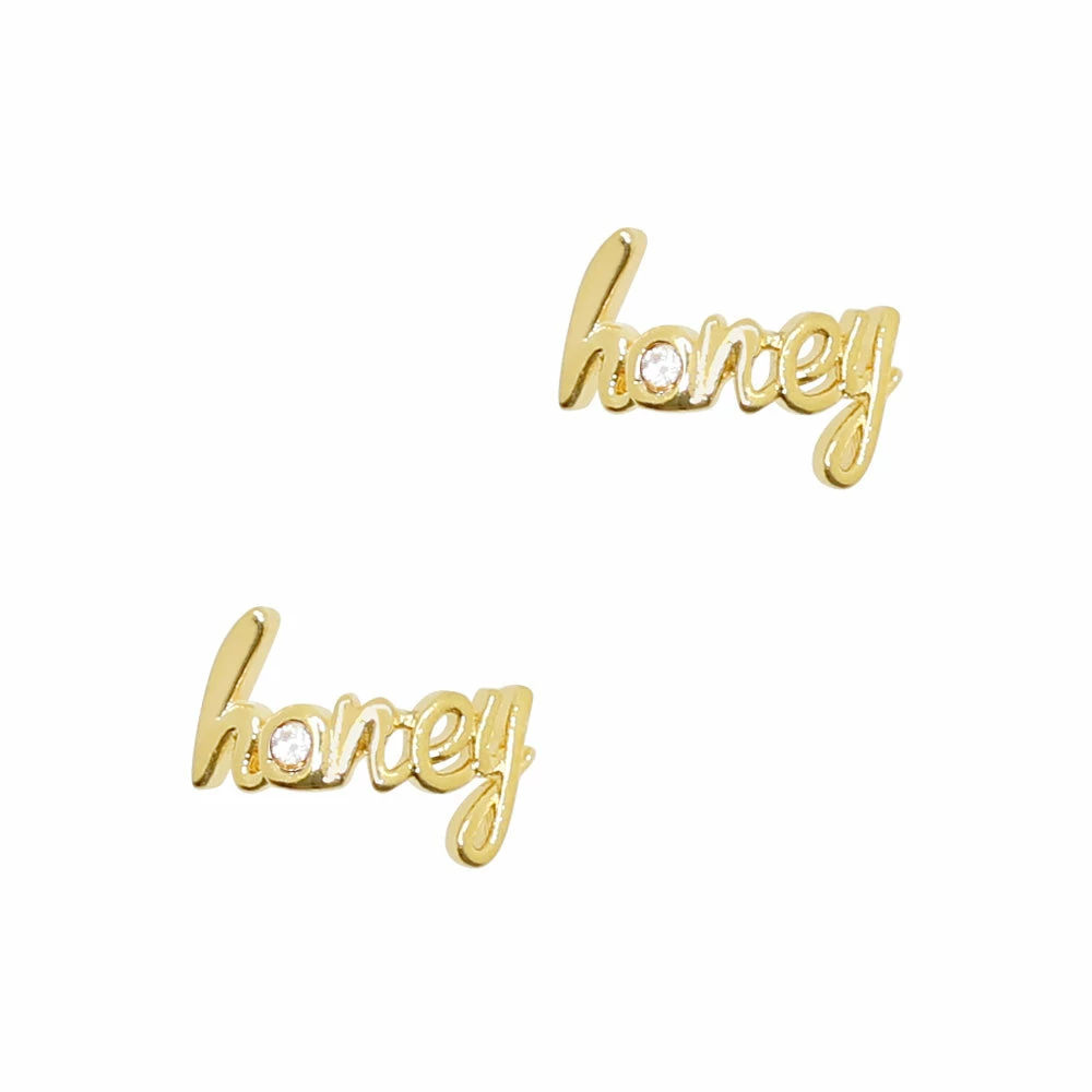 The word honey bedazzled with a sparkling zircon stone, perfect addition to your honeycomb or honeybee nails. Bee-u-tiful!