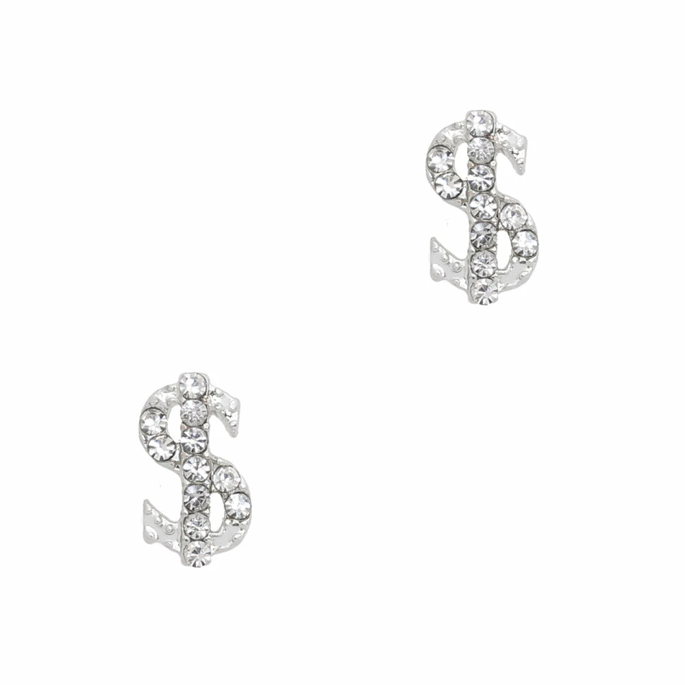 Silver bling money sign symbol nail charms with sparkly crystals. These beautiful 3D nail charms are the perfect accessories to your manicure! Slightly curved on the back to fit nicely on the nails.