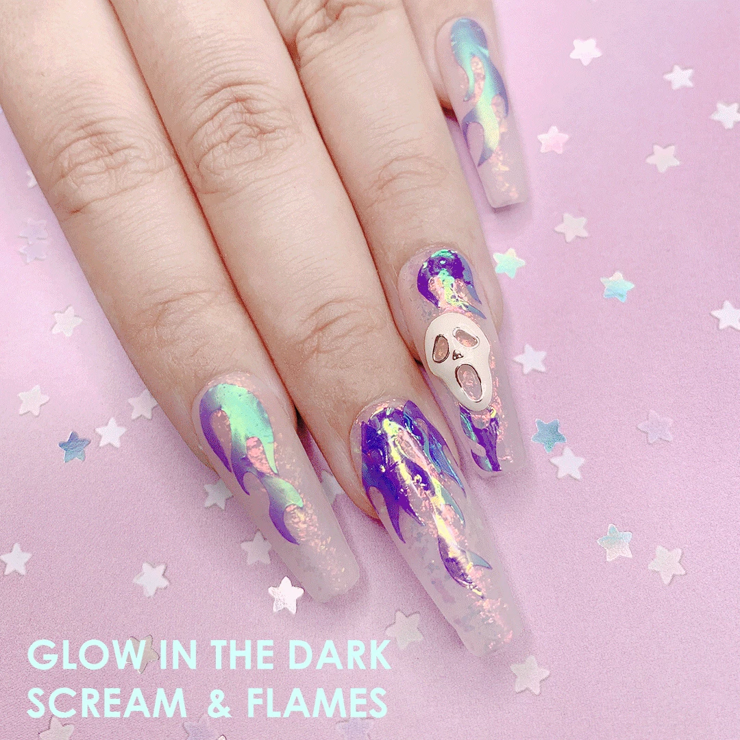 These beautiful 3D Scream nail charms GLOWS IN THE DARK and are the perfect accessories to your Halloween manicure!