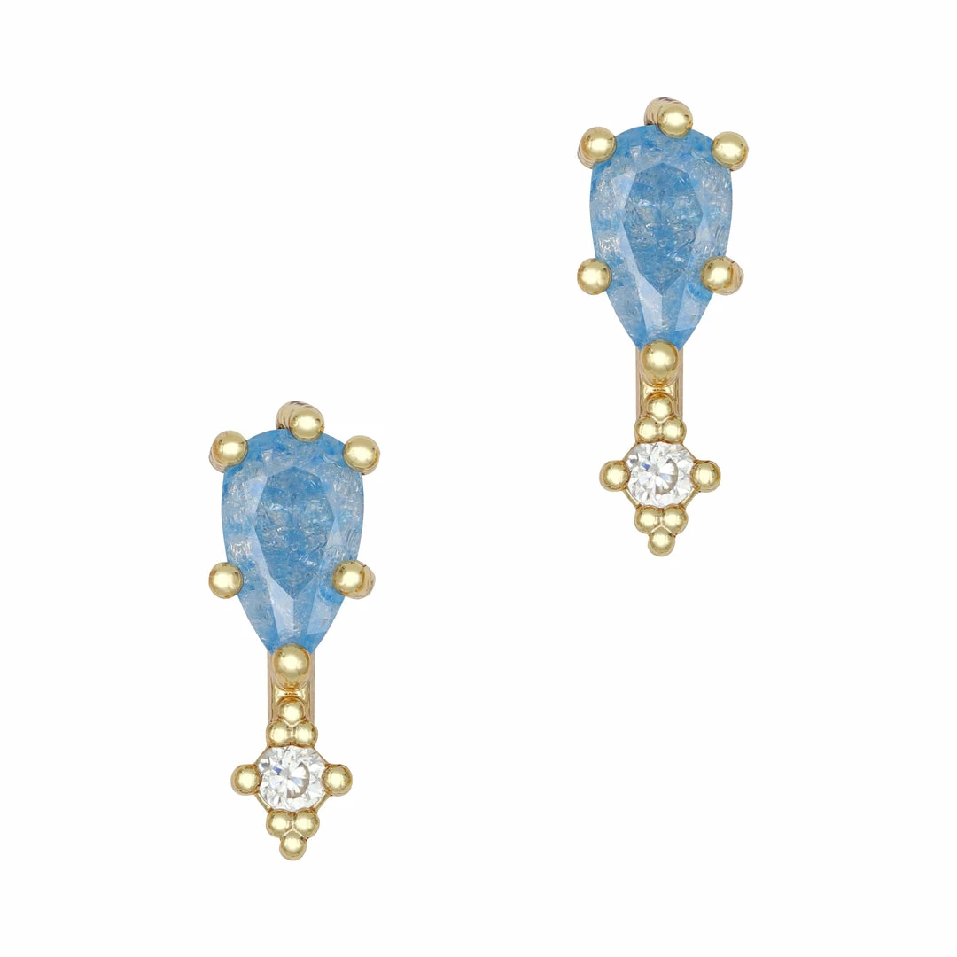 The Dainty Tear Drop charm is elegant and charming. A blue zircon crystal extends to a smaller, just as beautiful, clear crystal. Perfect for adding an extra touch to your next manicure and suitable for all nail shapes.
