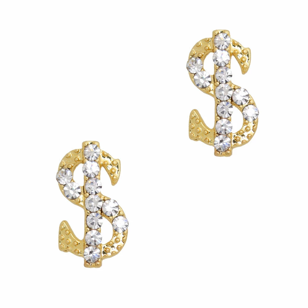 Bling money sign symbol nail charms with sparkly crystals. These beautiful 3D nail charms are the perfect accessories to your manicure! Slightly curved on the back to fit nicely on the nails.
