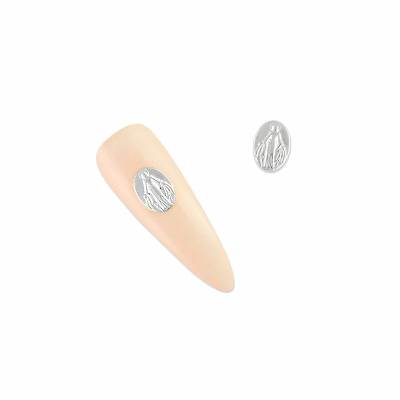 These symbolic medallion charms are hand made and plated in silver. They are generally smaller and thinner compared to our other charms, but are still reusable and the majority are curved on the back to fit the surface of your nails.