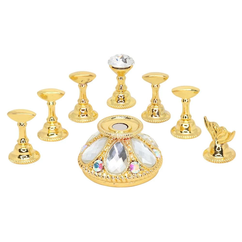This luxurious Mermaid Princess nail tip stand set includes 7 stands and a beautiful bedazzled gold base – perfect for creating nail art on nail chips.