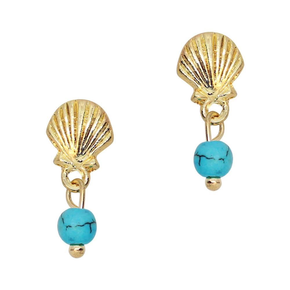 Cute gold seashell charm with a turquoise bead dangle. Perfect nail decor for beach or mermaid nails!