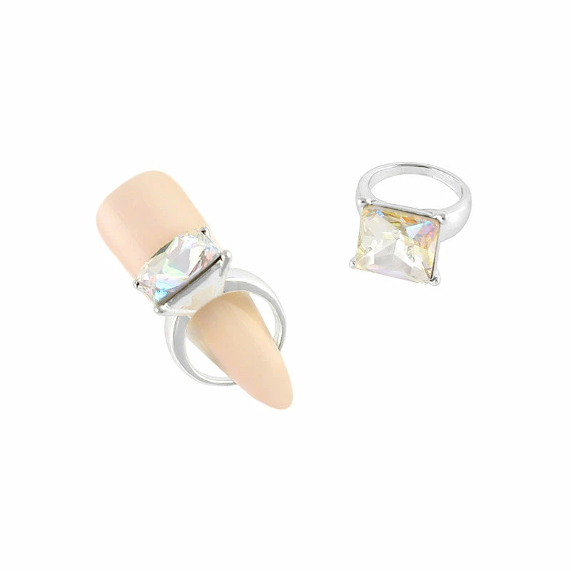 These sparkling silver square diamond ring nail charms featuring AB gemstones are the perfect accessories to your manicure!