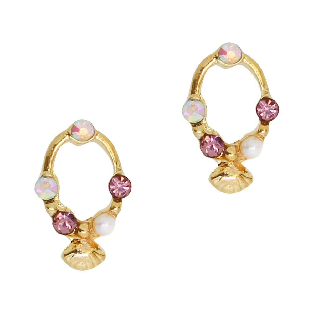 Cute gold seashell necklace charm with pearls and crystals. Perfect nail decor for beach or mermaid nails!