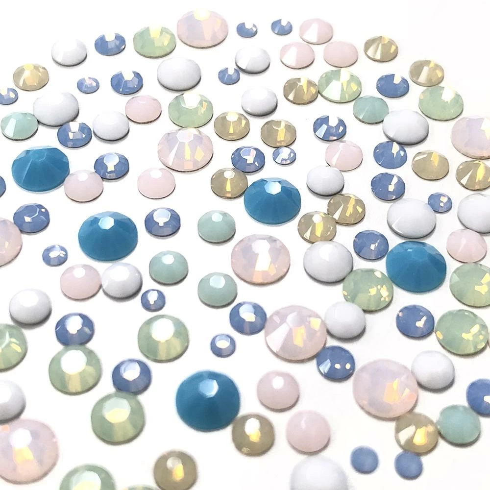 Not sure of what colors or sizes to pick for Swarovski crystal nail art? Check out this great value Swarovski round flatback crystal mix pack! 80-100 pieces of authentic Swarovski crystals in opal, pastel powder colors.