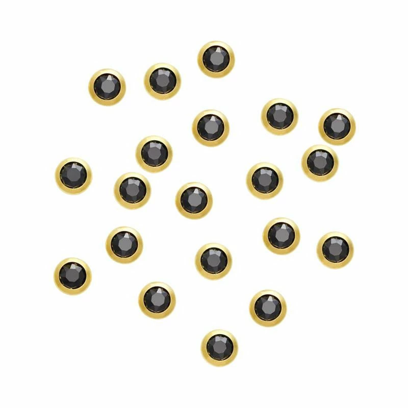 Authentic Gold Framed Round Flatback Swarovski Rhinestones in JET HEMATITE