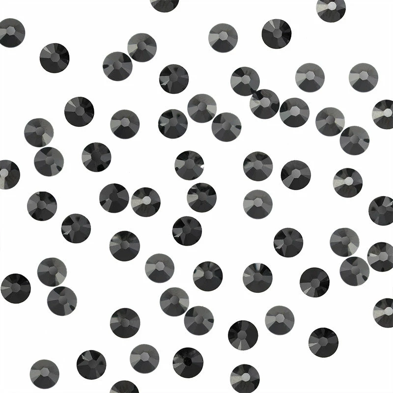 Authentic Flatback Swarovski Rhinestones in JET HEMATITE – a metallic onyx black finish.